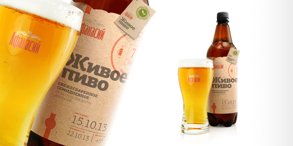 Холдинг «Афанасий» с 2005 года специализируется на производстве натуральных, экологически чистых продуктов, главный из которых — семидневное живое пиво. В разработке этикетки для пива подчеркнута рукотворность, «крафтовость» продукции, а также ее главную особенность — уникально короткий срок хранения, характерный для настоящего живого пива.